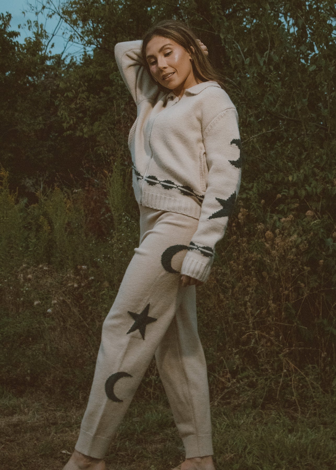 Cozy meets cool in the East Coast Nights Jogger. This tan sweats outfit, perfect for travel or lounging, features a charming navy moon and star print that adds a trendy, celestial vibe. Soft and comfy, it’s your go-to for both relaxing and stylish adventures under the stars.