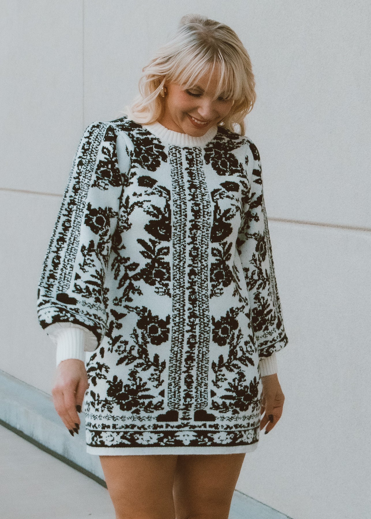 Wrap yourself in cozy charm with the Frost Bite Sweater Dress—a playful blend of comfort and style that's ready for all your winter celebrations. This adorable white and black design keeps you warm while looking effortlessly cute, whether you're sipping cocoa at holiday parties or enjoying casual winter hangouts. The soft, snuggly fabric makes it your new go-to for staying toasty and fabulous all season long.