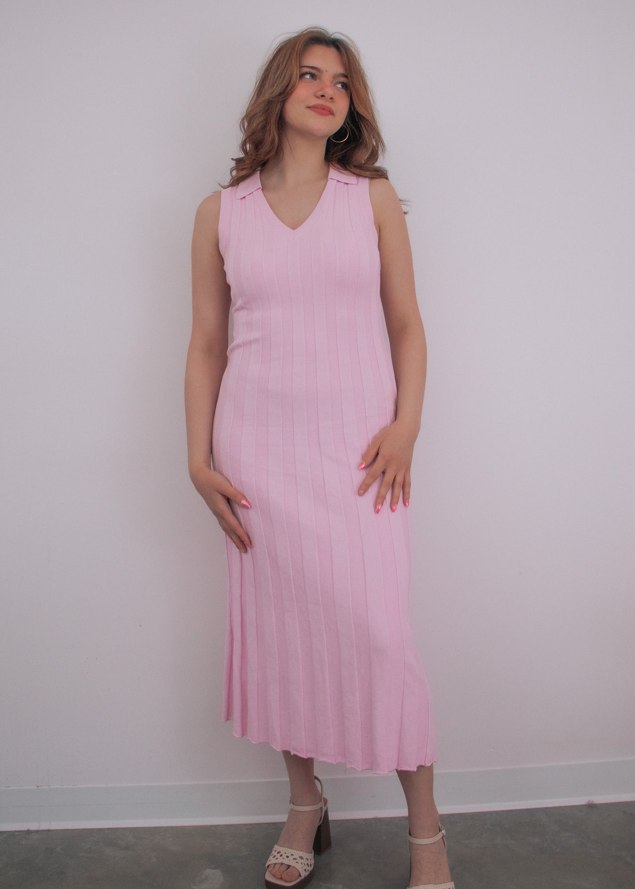 Effortless elegance meets timeless style with the Evermore Pink Ribbed Maxi. This sleeveless design features a classic collar and flattering ribbed texture that skims your silhouette beautifully. The soft pink hue works seamlessly for casual outings or dressed-up occasions. Perfect for warm weather, this maxi dress offers comfort without compromising on sophistication.