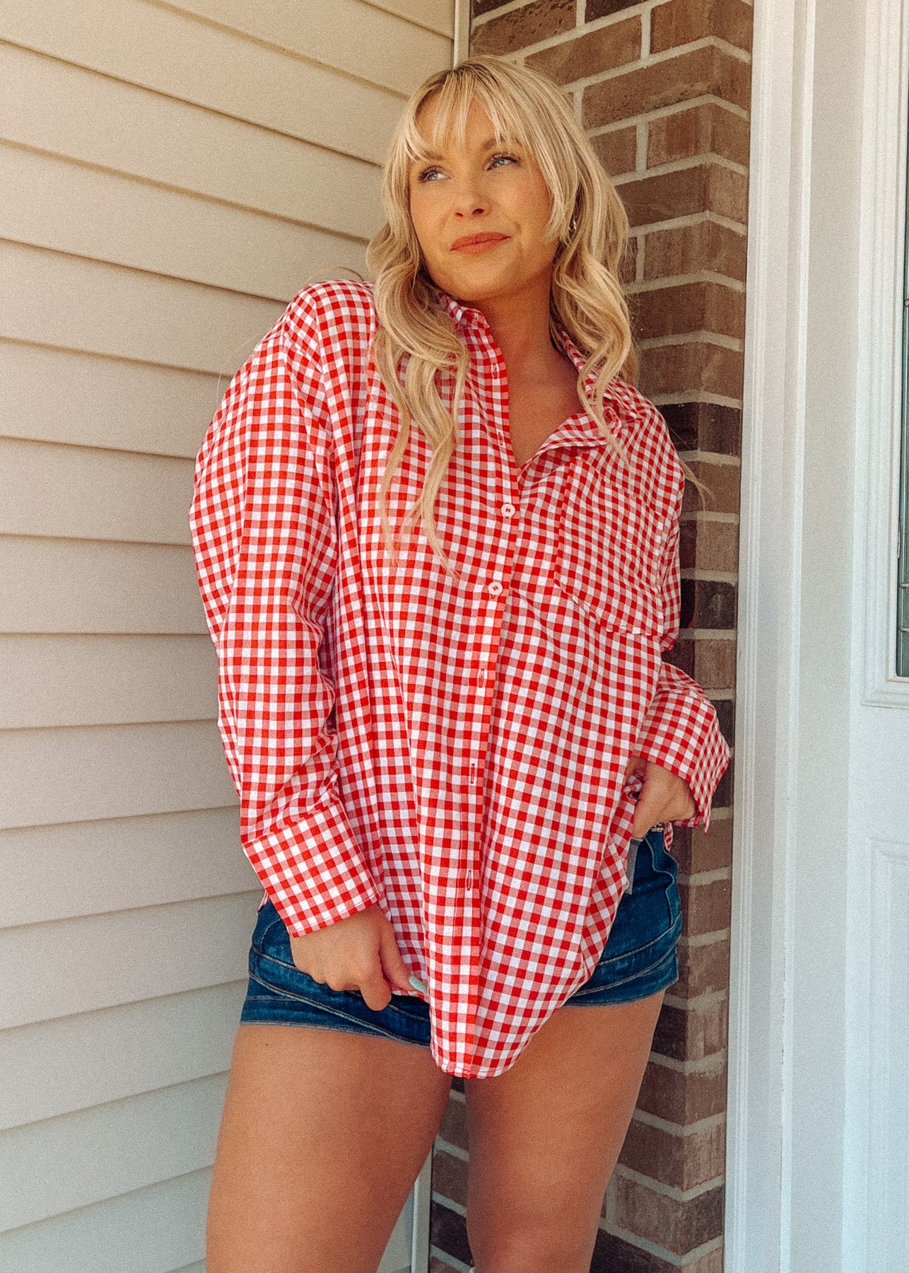 The Portside Picnic Oversized Shirt brings effortless style to your wardrobe. Cut generously for a relaxed fit, this red gingham classic works beautifully layered over basics or worn solo for a casual, put-together look. The timeless pattern pairs with everything in your closet, making it a versatile staple for weekend outings, seaside getaways, or everyday wear. Soft and comfortable, it's the kind of piece you'll reach for again and again.