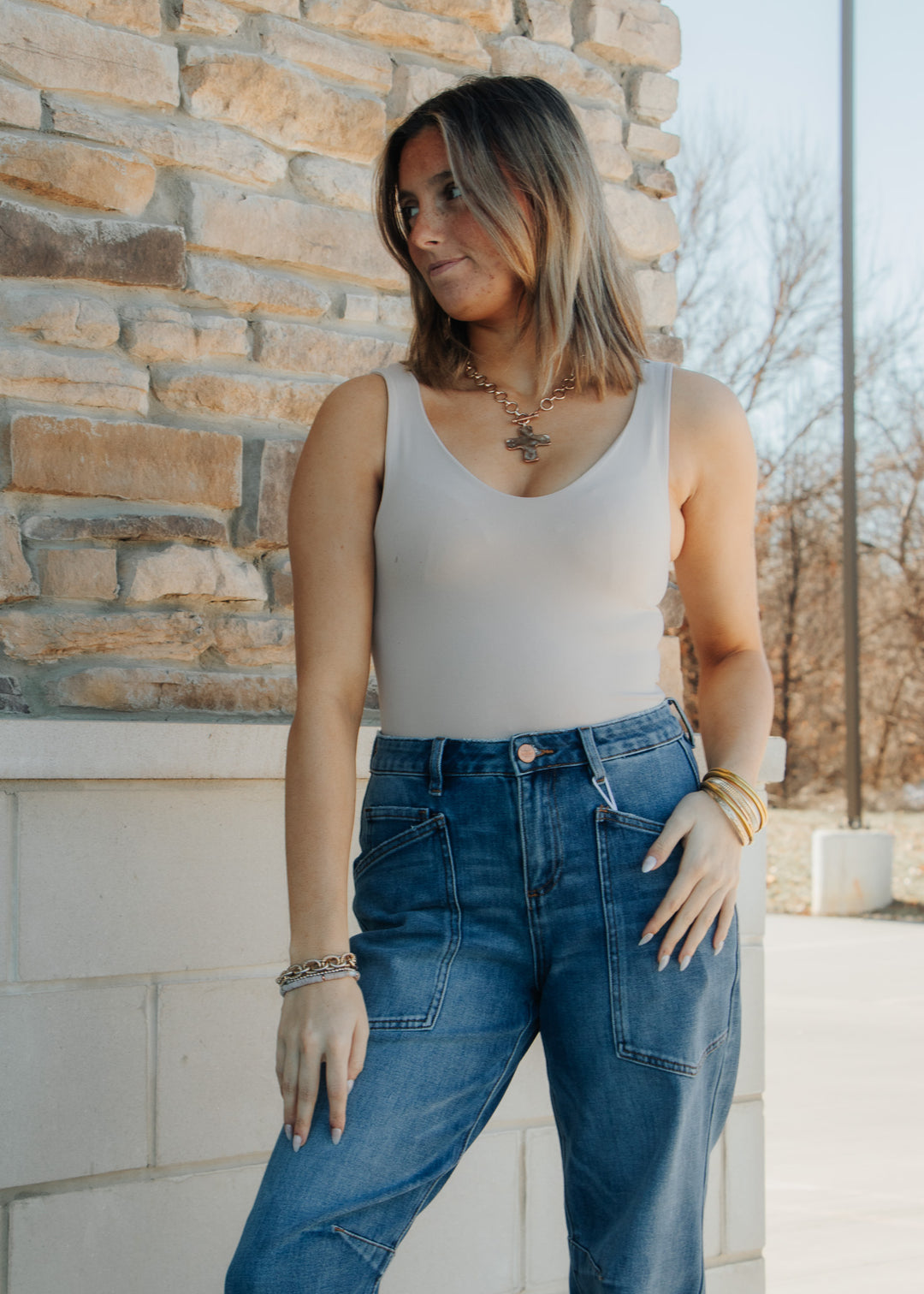 Basic Beige V-neck Tank